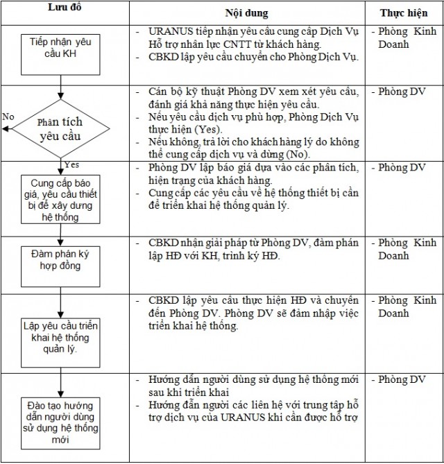 IV. Chi phí dịch vụ Đổi với hình thức giải quyết theo sự vụ cụ thể hoặc cho thuê nhân lực dài hạn, chúng tôi sẽ tiếp nhận yêu cầu, khảo sát đánh giá độ phức tạp của sự việc / hệ thống để đưa ra phí dịch vụ hợp lý.