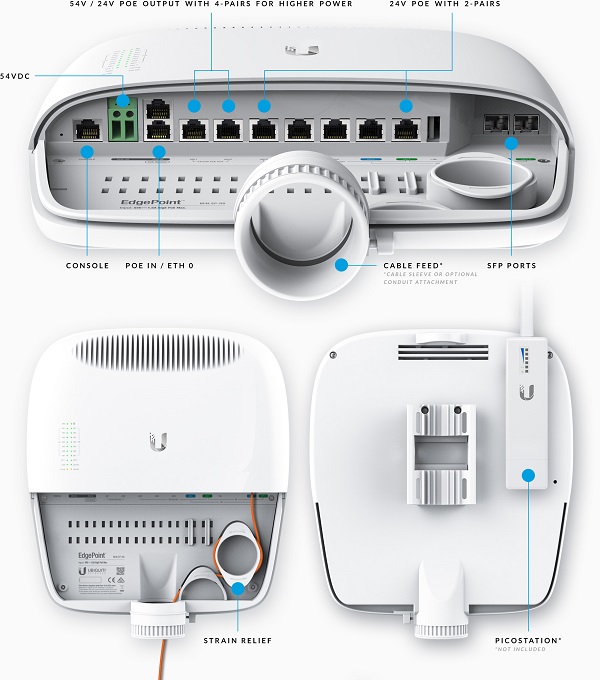 The EdgePoint features FiberProtect to significantly reduce electrostatic discharge (ESD) failures and electromagnetic interference (EMI), greatly improve data signal integrity, and consolidate the wired data backhaul to a single fiber cable run for long-distance connectivity.