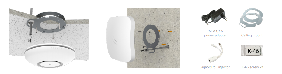 Dual-band 2.4 / 5GHz wireless access point for mounting on a ceiling or wall with two Gigabit Ethernet ports (one with PoE output) and 802.11ac support