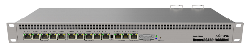 Dòng sản phẩm router MikroTik RB1100AHx4 được trang bị chip xử lý 4 cord Cortex A15 từ hãng công nghệ Annapurna labs, hiện tại trực thuộc Amazon. Tốc độ xử lý của chip 1.4 GHz, cho phép xử lý lưu lượng (throughput) dữ liệu tối đa lên đến 7.5 Gbit.Powerful 1U rackmount router with 13x Gigabit Ethernet ports.